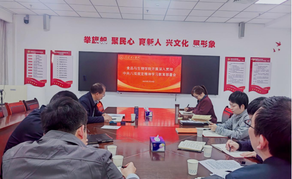 为认真落实学校深入贯彻中央八项规定精神学习教育工作党委常委会(扩大)会议要求,3月24日上午,食品与生物学院党委在医教楼C107会议室召开了深入贯彻中央八项规定精神学习教育工作部署会。学院领导班子成员、党支部书记、三办负责人参加会议。会议由学院党委书记杨晖主持。