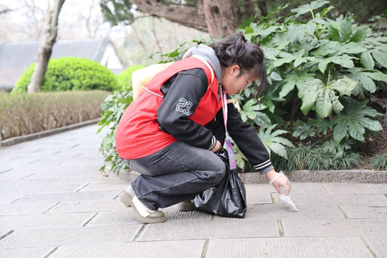 当日下午三点,志愿队伍在龙泉公园门口集合,分发红马甲和所需工具。随后所有学生各自组队开始在龙泉公园内进行志愿服务,清理公园内的生活垃圾。郝淑颖老师更是以身作则,带头清理,学生们也合理分工,相互配合,不怕脏不怕累,将公园的整洁度再次升高。两个小时的志愿活动,同学们虽然身体疲惫,但也是收获颇丰。