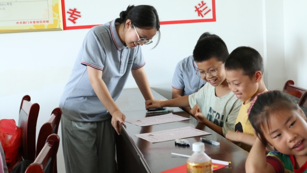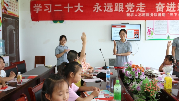 (通讯员:严会红 江新宇) 炎炎夏日,荆楚理工学院海角天涯社区最新进口“新农人”志愿服务队暑期“三下乡”走进钟祥市长滩镇,为长滩镇带来了一丝清凉,本是“大孩子”的志愿者们组织镇上的“小孩子们”集中在长滩镇党群服务点学习,通过思想引领、文化浸润等课程拓宽孩子们的视野,用青春力量为农村教育事业添砖加瓦。农村教育事业,食生“新农人”志愿服务队正在路上。