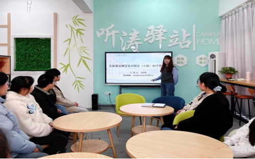 讲座中,孙艺娇博士聚焦食品与生物领域前沿研究方向,结合自身深耕科研的实践经历,从研究背景、核心思路、实验设计到成果应用,系统且生动地分享了“乳酸菌发酵豆乳对肠炎(小鼠)的干预”相关研究成果。她以严谨的逻辑框架拆解科研重难点,用通俗直白的表达剖析领域内关键技术瓶颈与创新突破路径,同时紧扣行业发展趋势,为学生详解科研选题、学术探索的核心方法,既有相当理论高度,又具实践指导价值,让在场学生深受启发。