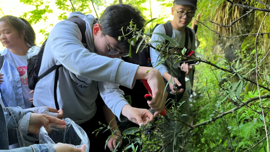 学生在采集植物标本